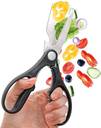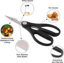 This scissor is Multi-functional has been designed to perfectly slice through delicate vegetables. serrated fish scales,Seafood ,Stainless steel Shears Snip Through Chicken Bones Effortlessly,It can also be used as a bottle opener. The blade of this scissors is designed using traditional Japanese style methods. This is combined with modern carbon steel making it rust proof and increasing its edge resistance qualities