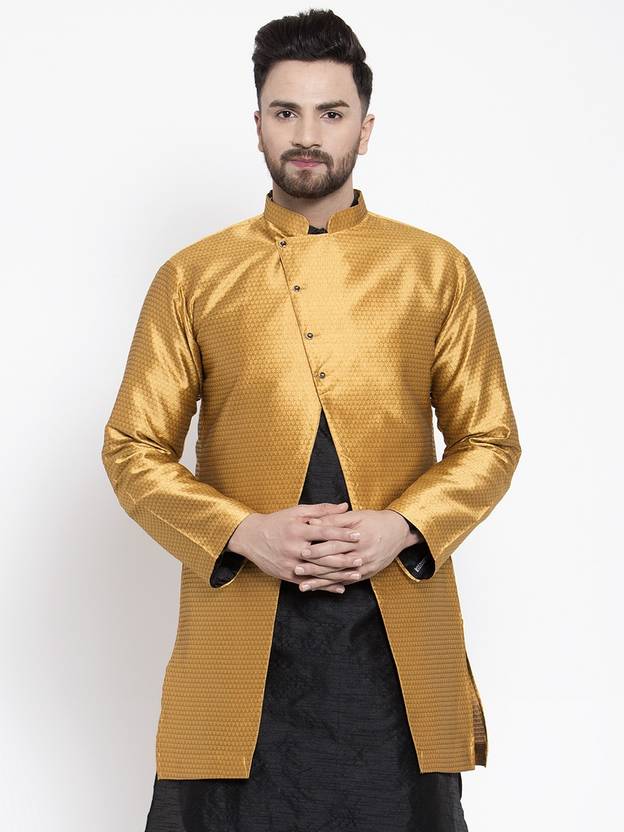 Kiafoo as a brand brings you quality and affordability, we take pride in our commitment to maintain quality standards in each piece manufactured by us. A true epitome of class, this designer Side Buttoned stylish Jacket will surely grace your presece on speacial occasions. Made from premium banarsi silk fabric, this set will surely make you the cynosure of all eyes.