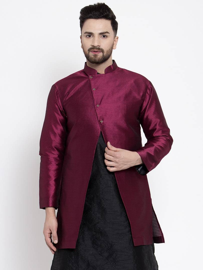 Kiafoo as a brand brings you quality and affordability, we take pride in our commitment to maintain quality standards in each piece manufactured by us. A true epitome of class, this designer Side Buttoned stylish Jacket will surely grace your presece on speacial occasions. Made from premium banarsi silk fabric, this set will surely make you the cynosure of all eyes.