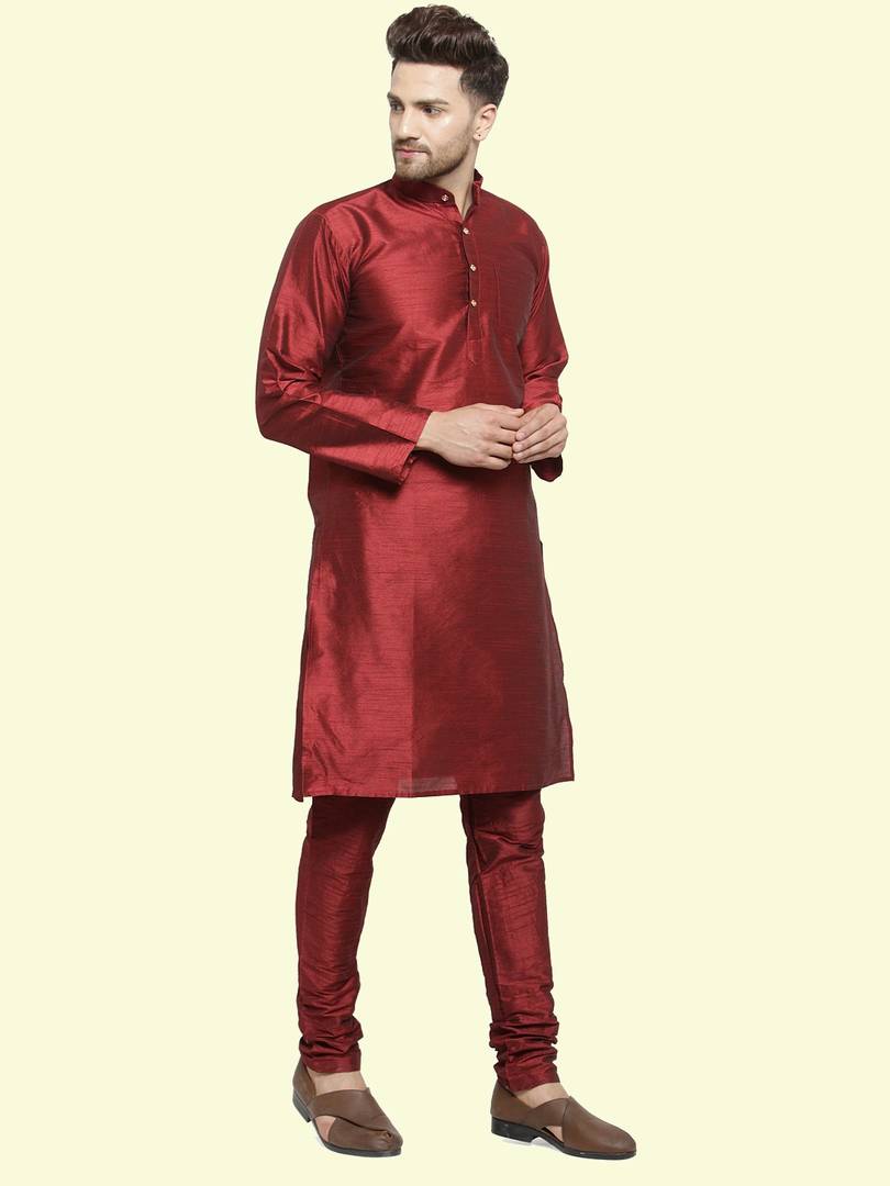 KAIFOO as a brand brings you quality and affordability. We take pride in our commitment to maintain quality standards in each piece manufactured by us. A true epitome of designer Kurta Pyjama will surely reflect your impeccable taste in fashion. Kurta Pyjama Made from Dupion silk fabric and this will surely make you the cynosure of all eyes. Team this Nehru jacket set with a pair of mojris or kolhapuri chappals to give a classy touch to your ethnic look.