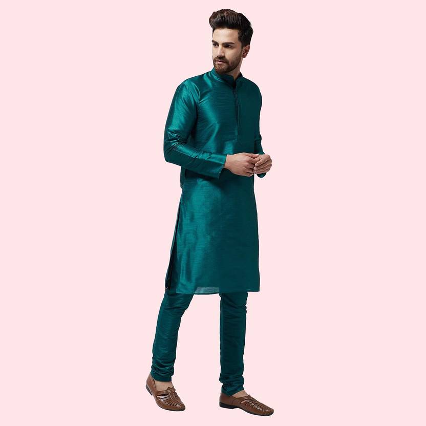 KAIFOO as a brand brings you quality and affordability. We take pride in our commitment to maintain quality standards in each piece manufactured by us. A true epitome of designer Kurta Pyjama will surely reflect your impeccable taste in fashion. Kurta Pyjama Made from Dupion silk fabric and this will surely make you the cynosure of all eyes. Team this Nehru jacket set with a pair of mojris or kolhapuri chappals to give a classy touch to your ethnic look.