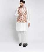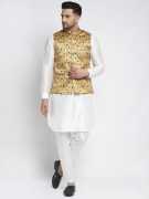 SAIFOO as a brand brings you quality and affordability. we take pride in our commitment to maintain quality standards in each piece manufactured by us. men from the fashion house of SAIFOO. Made from SATAN, this regular-fit NEHRU JACKET set comprises a SLEVELESS NEHRU JACKET to complete your look. Team this outfit with embroidered mojris and rock the party that you attend