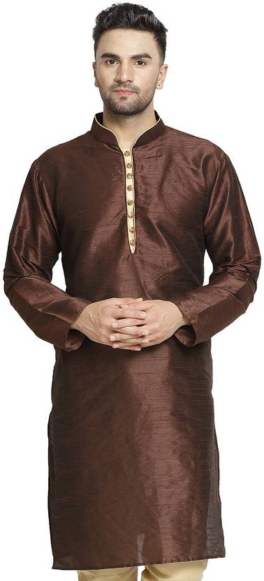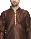 kaifoo Men Self Design Dupion Silk Straight Kurta (Brown)