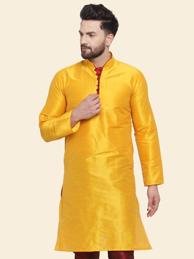 SAIFOO Men Solid Straight Kurta (Yellow)