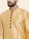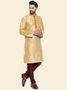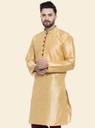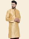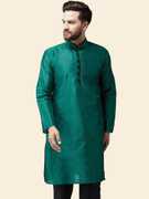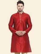 KAIFOO, We take pride in our commitment to maintain quality standards in each piece manufactured by us. A true epitome of class, long kurta will surely reflect your impeccable taste in fashion. Made from banarsi dupion silk fabric, this set will surely make you the cynosure of all eyes. Team this jacket with a pair of mojris or kolhapuri chappals to give a classy touch to your ethnic look.