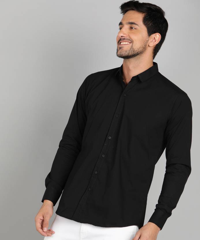 WE KAIKA Men Solid Casual Black Shirt