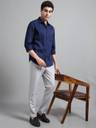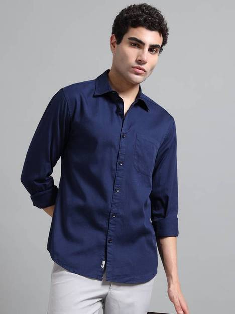 WE KAIKA Men Solid Casual Dark Blue Shirt