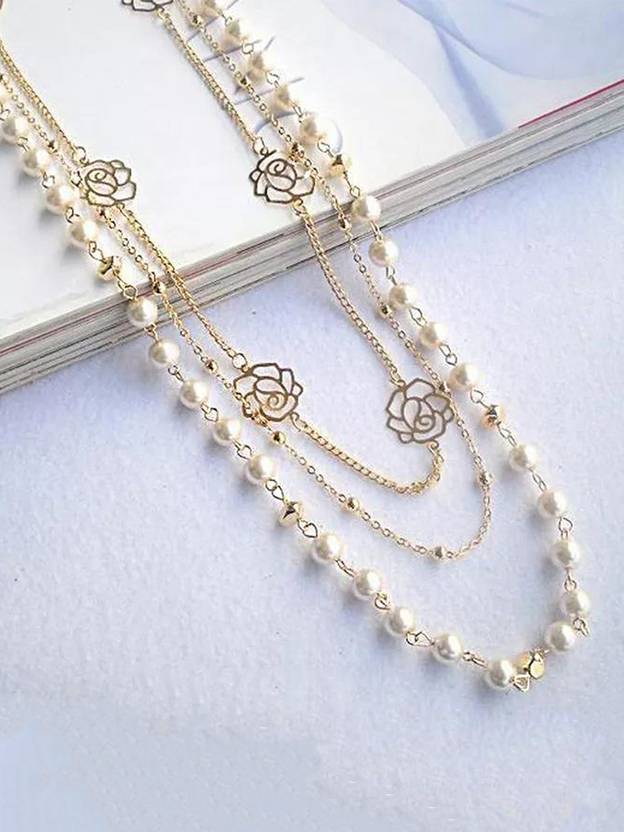 Trendy & Stylish Royal Look Studded Crystal Multi Layer Pearl Long Necklace Jewelry set will complement any Attire - Modern Look Long Pearl Multilayer Necklace Set with gold plated chains complements all outfits & this pearl jewelry set may be worn as a Statement Piece to any occasion. Ideal Necklace jewellery Set for Party / Festive wear Beauty- very feminine, this must-have design can be worn on any occasion to boost up your style factor and enhance the ultra beauty factor. Indian, or western, this necklace gives a glamorous looks, royal color giving the choice to it it with any color dress Produced under Quality Control; One by One Checking; Focus on Detail Processing. Top Quality/ Latest Trend Design/Anti-Allergy. Beautiful Looks at One Glance- with Intricate High Polish creates Glamorous Reflections and adds Luxurious Looks.Produced under Quality Control; One by One Checking; Focus on Detail Processing. Top Quality/ Latest Trend Design/Anty-Allergy .Necklace Size : Length - 48 CM * Width - 2.5 CM ,Necklace Drop - 47 CM, Earring Size : length 4 CM Kairangi
