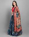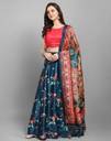 Showcasing exquisite prints, this women's lehenga, choli and dupatta set blends traditional charm with contemporary style. Furthermore, this contrasting set features a beautifully printed lehenga and dupatta, creating a striking visual appeal. The intricate patterns add depth and elegance, making it an ideal choice for festive and cultural celebrations.