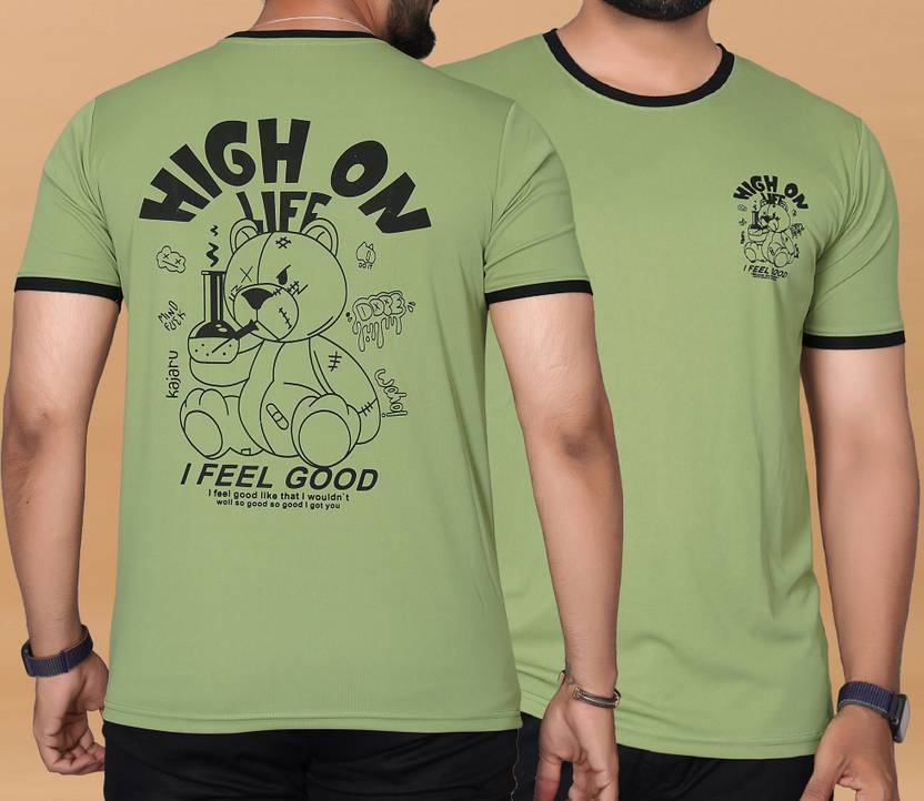 KAJARUĀ Men Printed Round Neck Polyester Green T-Shirt