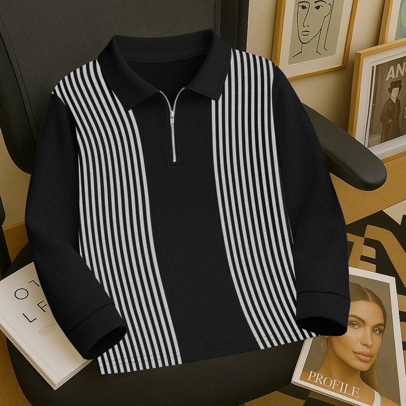 KAJARU Solid Men Zip Neck Grey T-Shirt