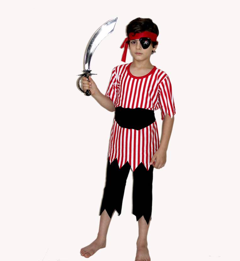 Pirate Costume includes Red & white stripped shirt combined with bandana & black waist belt pirate costume to complete the pirate attire. Smooth & stretchy material gives a Scary pirate experience. Your kids will love playing the part of a Pirate team with this costume set. Any Halloween party will be baffled by your little one's Swagging sense of style. . Material: Made of very soft & breathable fabric. It is lightweight, flexible and offers a comfortable fit for the kids costume. Costume for Halloween, Pirate Fancy dress, Fairy tales event,School Annual Function, Theme party, Fancy Dress Competition, Stage Show Dress. Wash Care Type : Dry Clean/Do No Iron Directly On Print/Wash Dark Colors Separately. Product Disclaimer : Product color may slightly vary due to photographic lighting sources or your monitor settings.