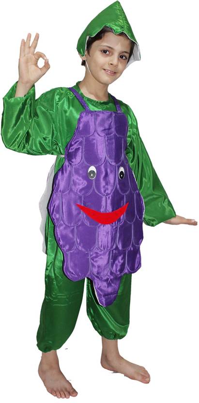Kaku Fancy Dresses brings you the Grapes costume. It includes Green Jumpsuit, Grapes cutout & Cap .Your little Fruit lover will look so cute they won't want to take it off., Your kids will love playing the role of a Grapes with this Costume set. It’s made from high-quality materials to ensure safety and durability., Your Little Prince/Princess Will Be The Cutest Kid In The Town This Freedom Season With Kaku Fancy Dresses Silk/Polyester Made Grapes Costume., Grapes Costume,Grapes fancy dress,Grapes Costume For Kids,Fruits Costume,Birthday Party Dress,Annual Function Dress,Theme Party Dress,Competition., Wash Care Type : Dry Clean/Do No Iron Directly On Print/Wash Dark Colors Separately.