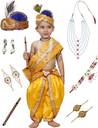 1 Dhoti set, 1 Patka (Dupatta), 1 Belt, 1 Fabric Mukut, 1 5-line mala, 1 pair of Bajuband, 1 moti bajuband, 1 set of earrings, 1 bansuri, and morpankh.
