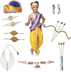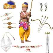 Include 1 Dhoti, 1 Patka, 1 Belt, 1 Mukut, , 1 5line Mala (necklace), 1 pair of Bajuband (armlet), 1 moti bajuband, 1 earring, 1 Dhanush, 1 Tarkash and teer.