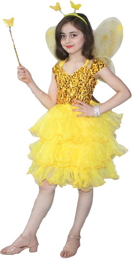Fly into the world of fantasy with our beautiful butterfly costume. It includes everything to look apart from the crowd. It comes with yellow color frock, butterfly wings & hairband Your kids will love playing the role of a butterfly character. It�s made from high-quality materials to ensure safety and durability. Your little princess will be the cutest kid in the town this season with Kaku Fancy dresses Polyester made Butterfly costume Butterfly Fancy Dress,Butterfly Costume,Butterfly kids Costume Wear,Butterfly Dress,Butterfly Insect costume,Butterfly kids costume wear,Insect Costume,Birthday Party Dress,Annual Function Dress,Theme Party Dress,Competition Dress,Stage Shows Dress Wash Care Type : Dry Clean/Do No Iron Directly On Print/Wash Dark Colors Separately