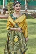 Kalapushpi Woven Banarasi Satin Saree (Green)