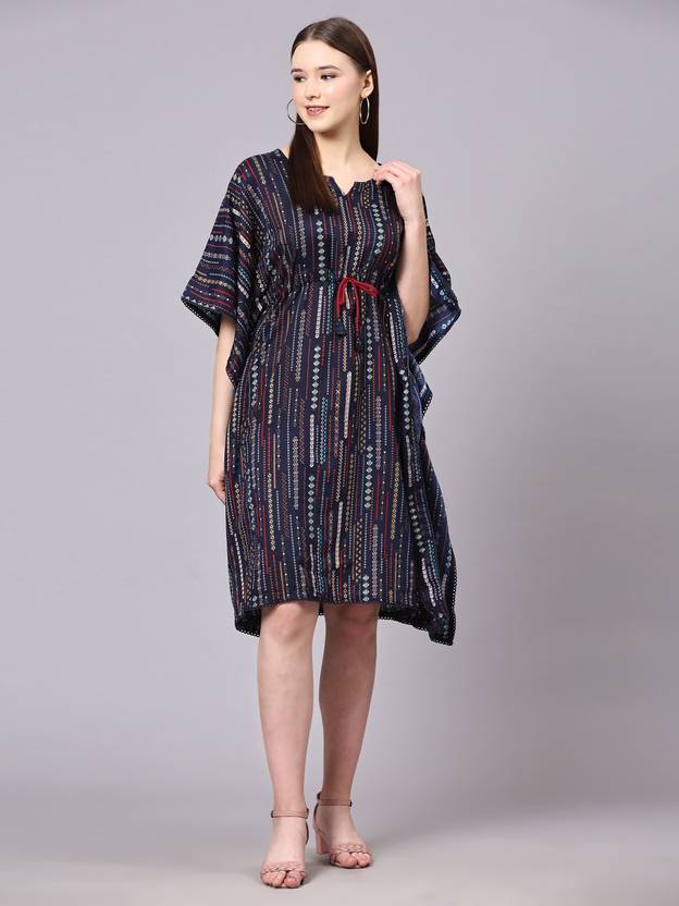 Showcasing a vibrant color palette, this multicolored kaftan dress from Kalasia features an abstract design throughout for a trendy twist. The flared silhouette is handcrafted from breathable fabric for optimal comfort, while an elasticated and drawstring waist adds to the allure.