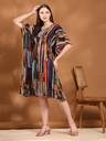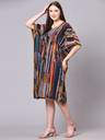 Showcasing a vibrant color palette, this multicolored kaftan dress from Kalasia features an abstract design throughout for a trendy twist. The flared silhouette is handcrafted from breathable fabric for optimal comfort, while an elasticated and drawstring waist adds to the allure.