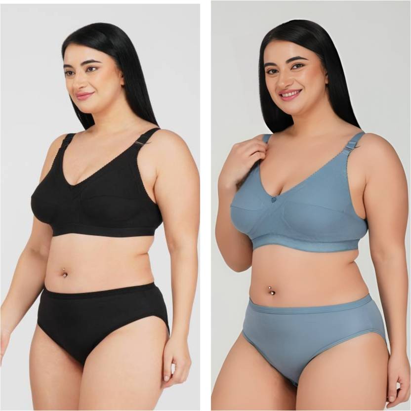 Kaley Bra & Panty Set Solid Black, Blue Lingerie Set