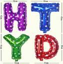 A protected packet of 13 supper premium quality of foil multi color LARGE letter balloons with air pipe.