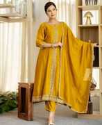 New Trendy Festival Women's Straight Heavy Embroidered Worked Anarkali and Pant With Dupatta set. worn for weddings, festivals, parties, and even casual gatherings.