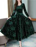 The epitome of timeless elegance: the Black Velvet Neckline Dress Maxi Gown. Crafted with meticulous attention to detail, this exquisite gown is designed to make you stand out at any winter party or formal event. Boasting a luxurious velvet fabric, this dress exudes sophistication and class. The soft, velvety texture drapes beautifully, enhancing your silhouette with every step you take. The neckline is a standout feature, adding a touch of allure and refinement to the ensemble. With long sleeves that provide both warmth and style, this dress is perfect for cooler evenings without compromising on glamour. Its maxi gown design exudes a sense of grandeur and grace, ensuring you make a statement wherever you go. Whether you're attending a gala, a winter wedding, or a festive soirée, this elegant velvet gown is guaranteed to turn heads and leave a lasting impression. Elevate your winter wardrobe with this timeless piece, and embrace the allure of understated luxury.