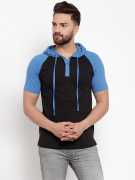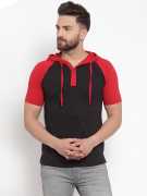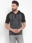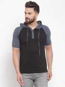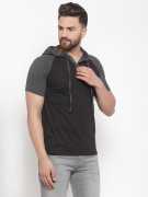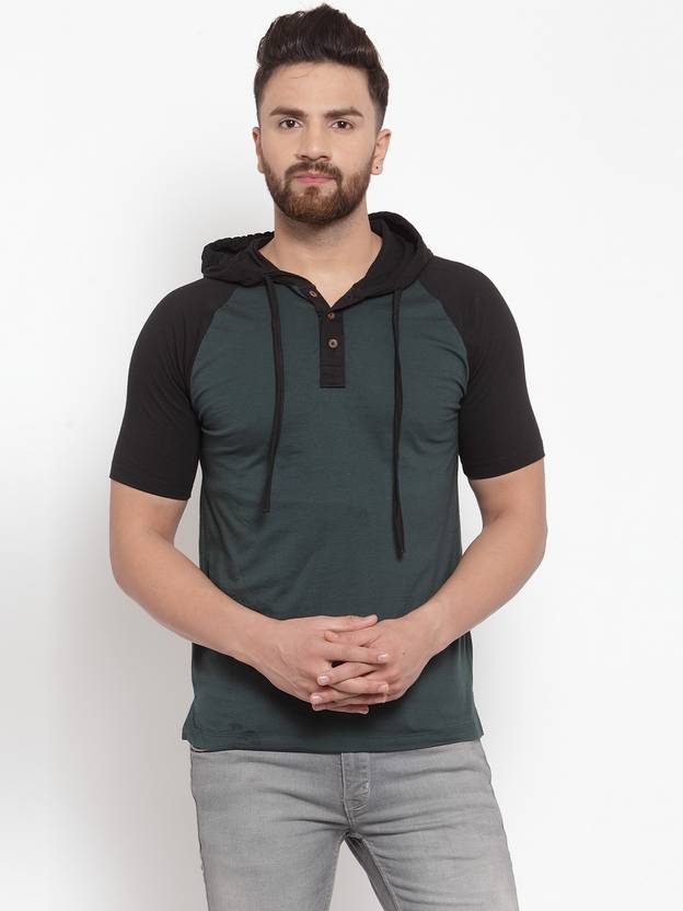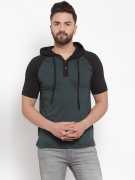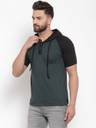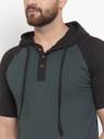 KALT Colorblock Men Hooded Neck Dark Green T-Shirt