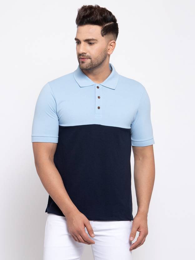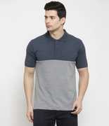 KALT Colorblock Men Polo Neck Dark Blue T-Shirt