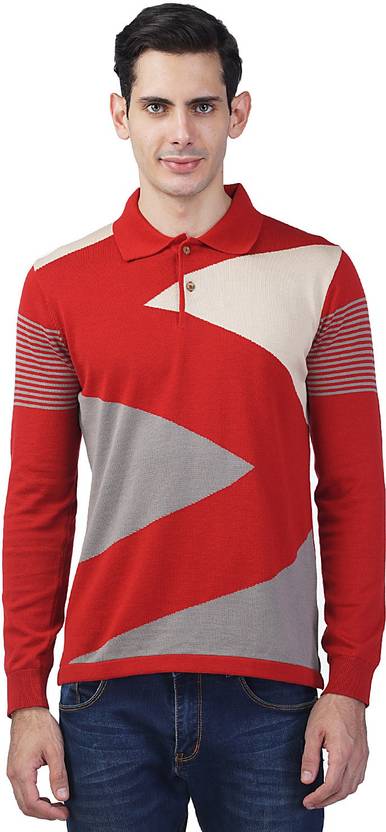Men Self Design Polo Neck Cotton Blend Red T-Shirt
