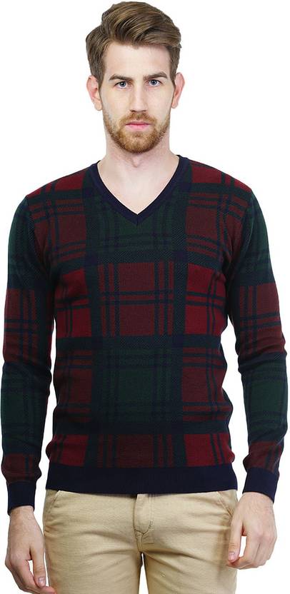 KALT Self Design V Neck Casual Men Multicolor Sweater