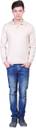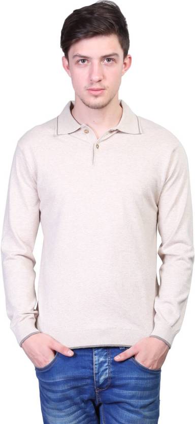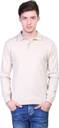 KALT Men Solid Polo Neck Cotton Blend Beige T-Shirt