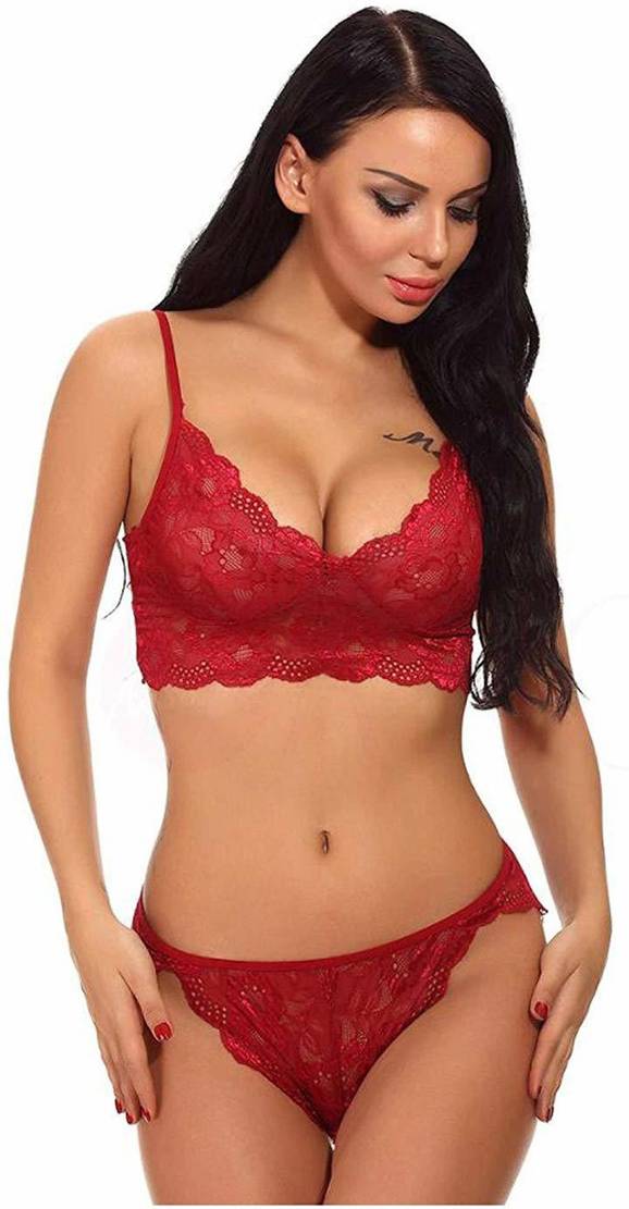 Women sexy soft Polyester sleepwear with lace-trimmed v-neckline, adjustable shoulder straps and open back with lace panel inset design, silky and soft fabric makes very comfortable Package Content: 1 x Women Sexy Chemise Size Measurement: Free Size/One Size : Upto Bust: 36"