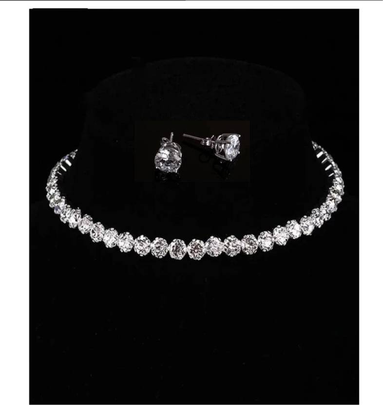 Including a stunning combination of a necklace and matching earrings, this jewel set is designed to provide a cohesive and elegant look. The intricate craftsmanship ensures that each piece complements the other, creating a harmonious balance that enhances your overall appearance. Whether you're dressing up for a special event or adding a touch of elegance to your everyday attire, this jewel set offers a complete solution to elevate your style.