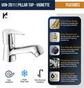 KAMAL Pillar Cock - Vignette | Wash Basin Tap | Chrome Finish Faucet for kitchen Use | Foam Flow Aerator Pillar Tap Faucet (Deck Mount Installation Type)