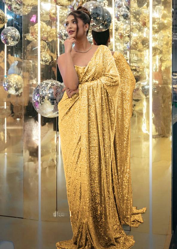 * Saree has rich sequins party wear look. It gives designer rich look to your personality.