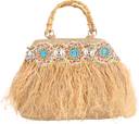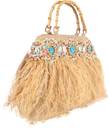 Natural jute with raffia hand embroidery beaded work with bamboo handle bag