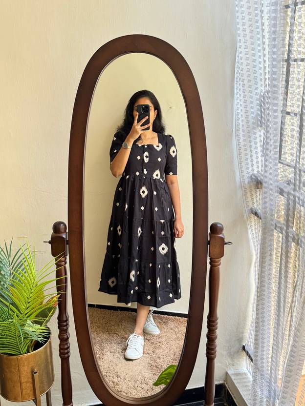 Viscose Rayon Stitched Flared/A-line Gown (Black)