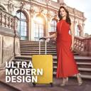 Matte finish with premium handles and combination lock for that rich look || Unique shape for maximum volume and retractable top and side handles for comfort || Cross ribbons in bottom compartment and U-shaped pocket for maximum packing space