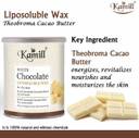 Kamill white chocolate Liposoluble Wax is made from a distinct blend of extremely stable and purified hydrocarbon resins, natural vegetable oils, and added white chocolate extracts, the result is an extremely safe and indulgent depilatory experience with the added benefits of healthy and younger-looking skin. KAMILL WHITE CHOCOLATE LIPOSOLUBLE WAX FOR ALL TYPES SKIN Contains active ingredients typical to White Chocolate such as Caffeine, and proteins Cocoa Butter has a nourishing, anti-oxidizing, energizing, and revitalizing action. Indicated for depilating most body parts, For emulated without Colophony, and won't irritate the skin. How to use: Remove the lid, place the container in the wax heater at maxi mum temperature level until a liquid consistency is achieved, then set the unit at the desired working temperature. With a spatula, apply a thin coat of wax at a 45 degrees angle in the direction of hair growth. Work in small sections until familiar with the procedures involved. Hold the skin taut and pull off the wax with one quick motion in the opposite direction of hair growth keeping the non-woven strip as close to the skin as possible.