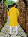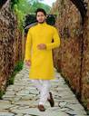 The style elements include a mandarin collar with a 4-button placket and full sleeves with turn-up detail. Further details include a chest pocket and an eye-catching all-over slub pattern on the body. Crafted in a light, premium breathable fabric that will easily enhance your comfort level. This is a 2-pieces set that includes a long button kurta and a drawstring pajama. Traditional design on this kurta captures all of the details of the classic Indian men's garment with long sleeves.4. Suitable for: Party, Weddings, Regular Wear, Celebrations, Occasions, Festivals, Lohri, Pongal, Makar Sakranti, Baisakhi, Holi, Eid, Raksha Bandhan, Dussehra, Diwali, Navratri, Pooja, Christmas, Onam, Ganesh Chaturthi, Janmasthmi and Gifts for Mens.