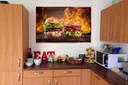 KAMYA HOME DÉCOR 50 cm Hot burger kitchen wall sticker (size-75x50 CM) Self Adhesive Sticker (Pack of 1)