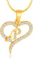 Kanak Jewels Spade shape P Letter Fashion Jewellery Valentine Gift Alphabet Heart Chain Necklace pendant for girls women men boys girlfriend Jewellery Gold-plated Cubic Zirconia Alloy Brass Pendant Rhodium Cubic Zirconia Brass Pendant