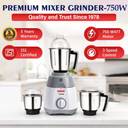 "The Kanchan Tiago Plus Mixer Grinder 750W is built to handle all your grinding, mixing, and blending needs with ease. Powered by a high-performance 750W copper motor, it delivers fast and efficient grinding, ensuring the perfect texture for dry spices, chutneys, batters, and juices.
