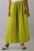 KANCHUKBrand ,We are offering you a Palazzo for Women in Super Soft Rayon in different colors. The Rayon Palazzo is a versatile and stylish garment that combines the comfort of Rayon fabric with the elegance of palazzo pants. Palazzo is also known to called as Plazo Pant / Plazo Trouser. In summary, Rayon Palazzo pants is a Trendy Palazzo now a days which offer a blend of comfort, elegance, and versatility, making them a popular choice in contemporary fashion. Here are some key features and characteristics: Material: Made from super soft Rayon fabric known for its soft, smooth texture and excellent drape. Rayon is breathable, making it a comfortable choice for various climates. Design: Palazzo pants / Palazzo Trousers for Womens or Girls are characterized by their wide legs that flare out from the waist, providing a flowing and relaxed silhouette. This design is both stylish and flattering for many body types. Comfort: The elastic or drawstring waistband adds to the comfort, allowing for a customizable fit. The lightweight nature of Rayon ensures ease of movement, making them ideal for both casual and semi-formal settings. Versatility: Rayon Palazzo pants can be dressed up or down. Pair them with a simple top and sandals for a casual day out, or with a more formal blouse and heels for an evening event. Patterns and Colors: Available in a wide range of colors, prints, and patterns, including solids, florals, and ethnic designs. This variety allows for personal expression and versatility in styling. Care Instructions: Generally, Cotton requires gentle care. Its often recommended to easy wash or use a delicate cycle in the washing machine, and to air dry to maintain the fabrics quality and prevent shrinkage.Women Rayon strip printed palazzo with tussle work and Pocket.