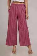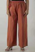 KANCHUK Brand .We are offering you a Palazzo for Women in Super Soft Cotton in different colors. The Cotton Palazzo is a versatile and stylish garment that combines the comfort of Cotton fabric with the elegance of palazzo pants. Palazzo is also known to called as Plazo Pant / Plazo Trouser. In summary, Cotton Palazzo pants is a Trendy Palazzo now a days which offer a blend of comfort, elegance, and versatility, making them a popular choice in contemporary fashion. Here are some key features and characteristics: Material: Made from super soft cotton fabric known for its soft, smooth texture and excellent drape. Cotton is breathable, making it a comfortable choice for various climates. Design: Palazzo pants / Palazzo Trousers for Women's or Girl's are characterized by their wide legs that flare out from the waist, providing a flowing and relaxed silhouette. This design is both stylish and flattering for many body types. Comfort: The elastic or drawstring waistband adds to the comfort, allowing for a customizable fit. The lightweight nature of cotton ensures ease of movement, making them ideal for both casual and semi-formal settings. Versatility: Cotton Palazzo pants can be dressed up or down. Pair them with a simple top and sandals for a casual day out, or with a more formal blouse and heels for an evening event. Patterns and Colors: Available in a wide range of colors, prints, and patterns, including solids, florals, and ethnic designs. This variety allows for personal expression and versatility in styling. Care Instructions: Generally, Cotton requires gentle care. It's often recommended to easy wash or use a delicate cycle in the washing machine, and to air dry to maintain the fabric's quality and prevent shrinkage.Women cotton strip printed palazzo with tussle work and Pocket.