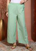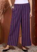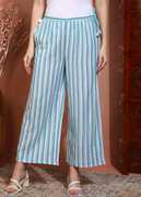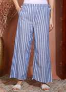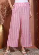 KANCHUK Brand .We are offering you a Palazzo for Women in Super Soft Cotton in different colors. The Cotton Palazzo is a versatile and stylish garment that combines the comfort of Cotton fabric with the elegance of palazzo pants. Palazzo is also known to called as Plazo Pant / Plazo Trouser. In summary, Cotton Palazzo pants is a Trendy Palazzo now a days which offer a blend of comfort, elegance, and versatility, making them a popular choice in contemporary fashion. Here are some key features and characteristics: Material: Made from super soft cotton fabric known for its soft, smooth texture and excellent drape. Cotton is breathable, making it a comfortable choice for various climates. Design: Palazzo pants / Palazzo Trousers for Women's or Girl's are characterized by their wide legs that flare out from the waist, providing a flowing and relaxed silhouette. This design is both stylish and flattering for many body types. Comfort: The elastic or drawstring waistband adds to the comfort, allowing for a customizable fit. The lightweight nature of cotton ensures ease of movement, making them ideal for both casual and semi-formal settings. Versatility: Cotton Palazzo pants can be dressed up or down. Pair them with a simple top and sandals for a casual day out, or with a more formal blouse and heels for an evening event. Patterns and Colors: Available in a wide range of colors, prints, and patterns, including solids, florals, and ethnic designs. This variety allows for personal expression and versatility in styling. Care Instructions: Generally, Cotton requires gentle care. It's often recommended to easy wash or use a delicate cycle in the washing machine, and to air dry to maintain the fabric's quality and prevent shrinkage.Women cotton strip printed palazzo with tussle work and Pocket.