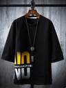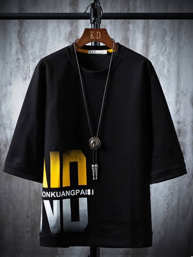 Men Typography Round Neck Cotton Blend Black T-Shirt