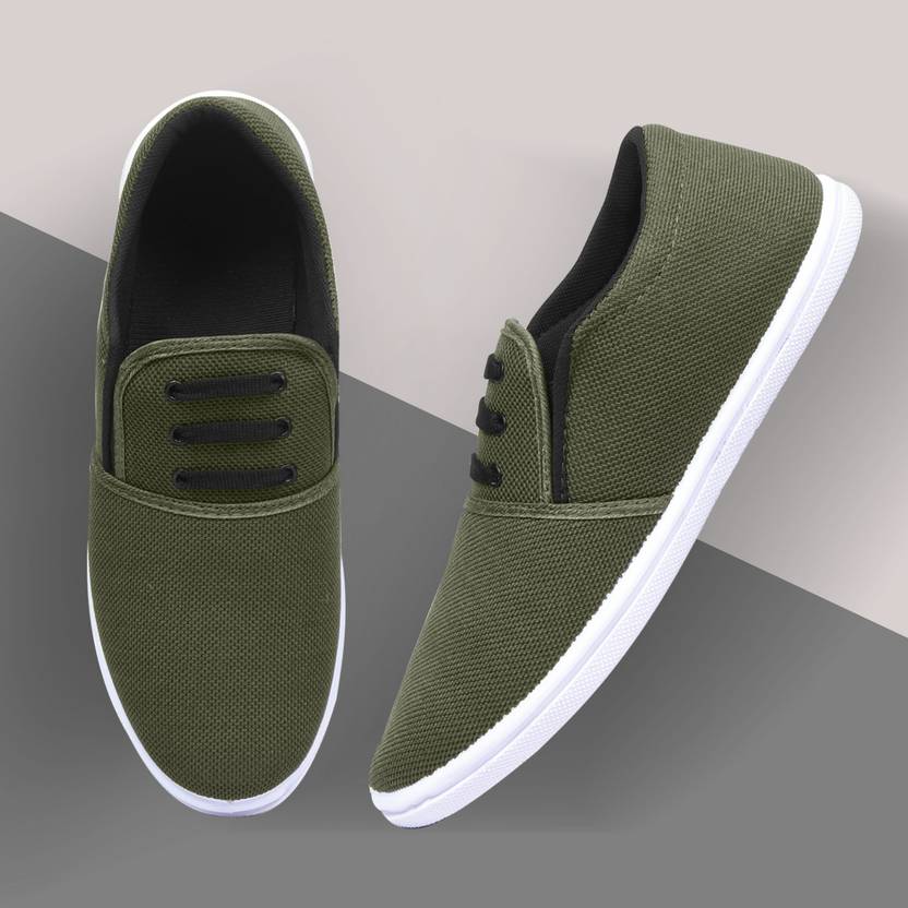 KANEGGYE Shoes for Men Canvas Shoes For Men (Olive , 8)