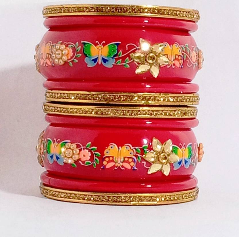 Hello ,Today I am going to add a beautiful lac bangles design in your bangles collection. This bangles is made of pure lac. In This order you will get two pics kada ,four pics plane lac bangles and four pics golden side churi .The bangles material quality and finising is at extreme level.you can use this bangles as you wish ,you can use thi bangles in water also.